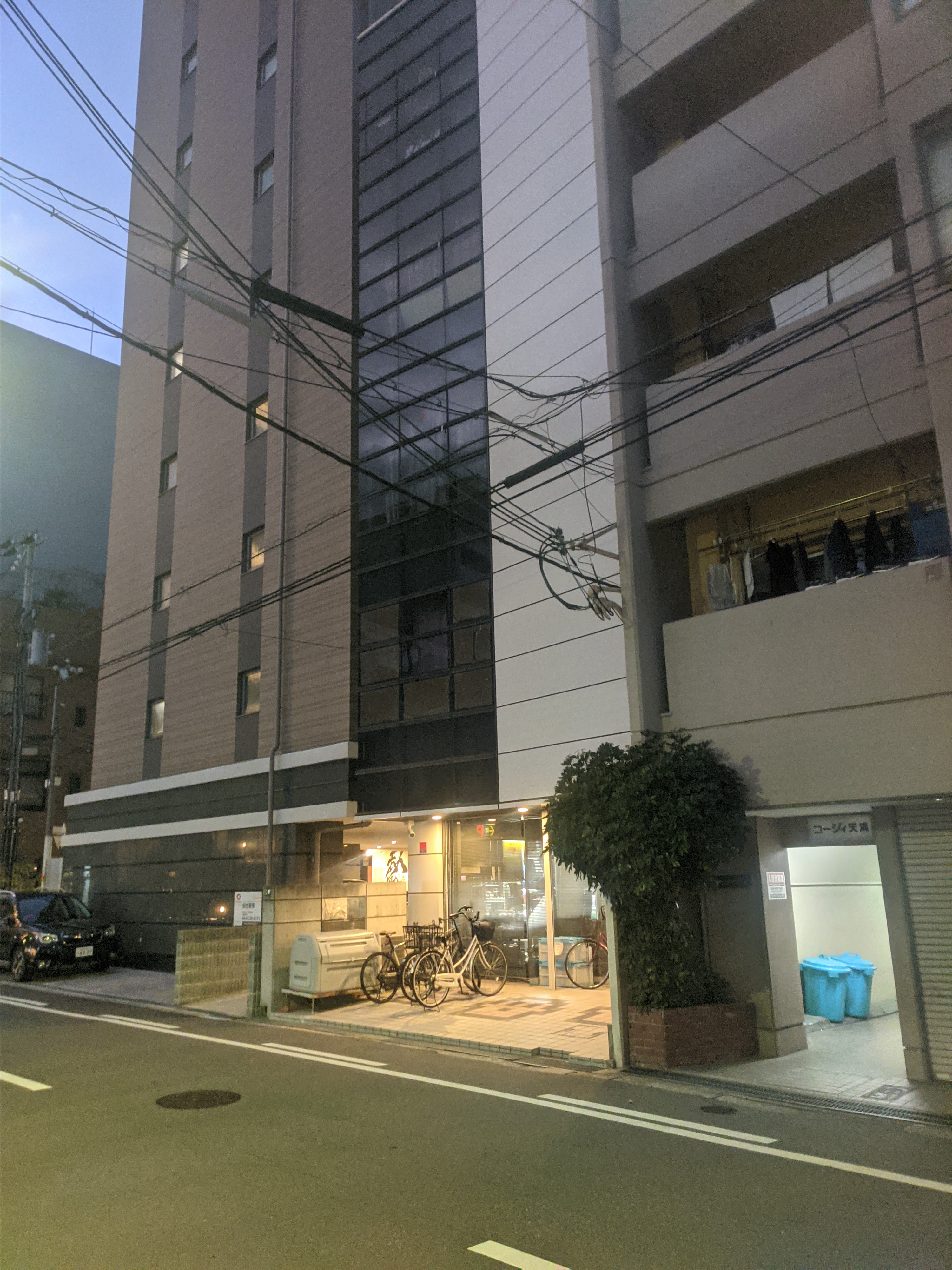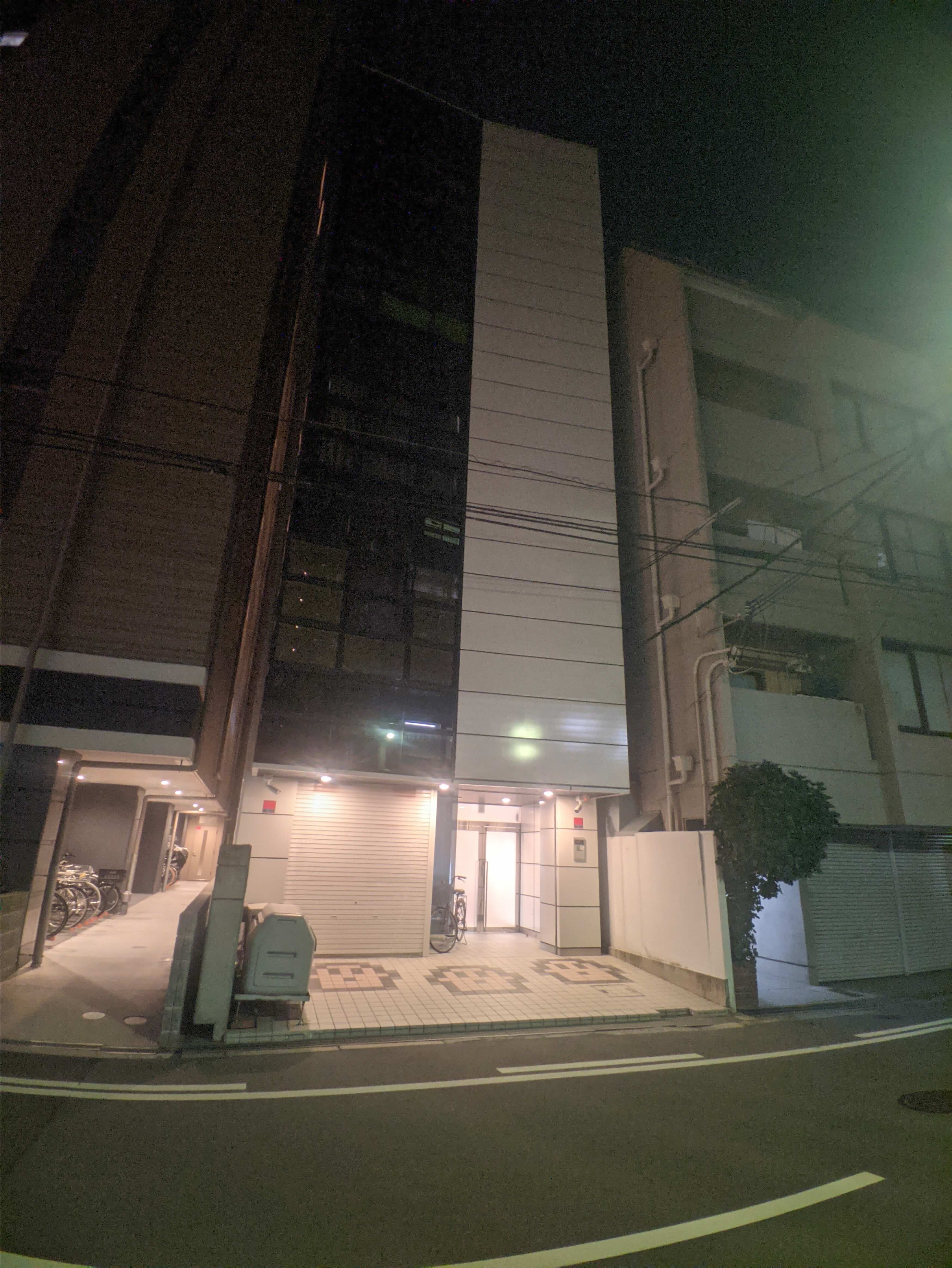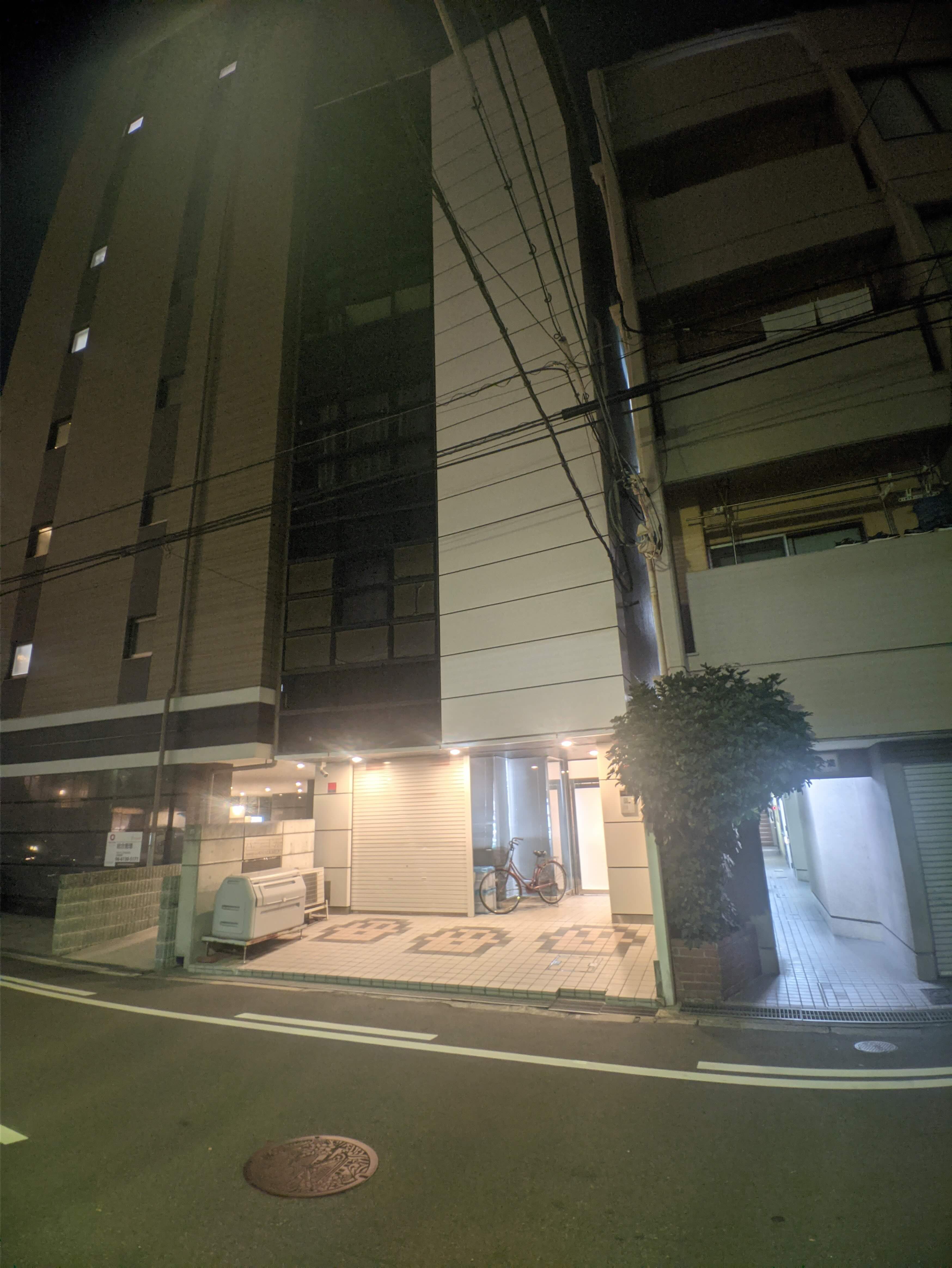 这是7点半的照片。百叶窗关闭,但室内灯还是亮着,门口的自行车表至少有1人还在加班。